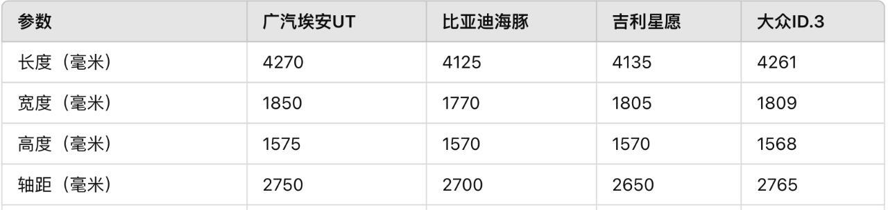 目前与广汽埃安UT数据接近的比亚迪海豚,起步价要9.98万起,吉利星愿要8.88万起,大众ID.3定价达到12万起,一旦埃安UT最终上市价格集体下调1万元,那么比亚迪海豚、吉利星愿、大众ID.3的市场将受到严重影响。
